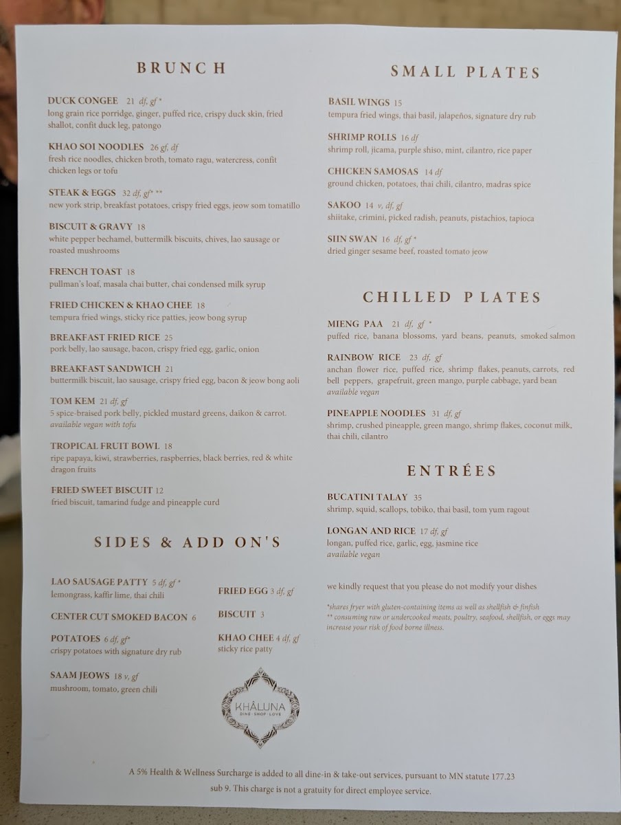 Welcome to Khâluna, a hidden gem of Laotian cuisine nestled in the heart of Minneapolis at 4000 Lyndale Ave S. As you step into this vibrant eatery, you're immediately enveloped in a warm and inviting atmosphere, enhanced by tasteful décor and soft lighting. Khâluna is not just a restaurant; it's a culinary experience that takes you on a journey through the rich flavors and traditions of Laos.